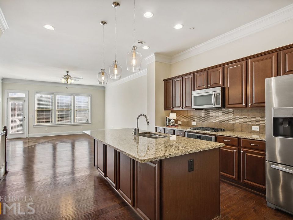 Enjoy "turn key" living and a bustling, high-energy lifestyle just outside Sandy Springs. Alderwood at Abernathy is a gated community with classic brick styling, a resort-style pool, and close access to many amenities including Perimeter Mall, MARTA, and Abernathy Greenway Park (named The Most Playable Art Park in Atlanta Magazine's "Best of Atlanta). This home has a traditional design, over 2300 square feet, with 10-foot ceilings, crown molding detail and gleaming hardwoods on the main level. The kitchen has high-end cabinetry, a large granite breakfast bar with lots of under counter storage, new lighting, and a generously sized walk-in pantry. It flows conveniently to a large Great room and deck. A gorgeous view of the pool from your deck means you know exactly when to find your lounge chair during warmer months. Entertain guests from the dining room tastefully accented with judges' paneling and a light, bright three-panel window accented with arched millwork. Walk upstairs by way of a grand wood-railed staircase to a generously sized master suite with double vanity and granite counters, white cabinetry, separate tub and walk-in shower, and large closet. A large secondary ensuite bedroom on the opposite side of the home means privacy for family or guests. Your laundry room is conveniently located on the second (master bedroom) level, with stainless washer and dryer included. The lower level features a third bedroom that can transition to a work-from-home office, a den, or even a workout space if needed. This home has just painted inside for a fresh, new look and feel! Residents at Alderwood at Abernathy enjoy quick access to 400, lots of well-rated restaurants, and great retail conveniences (like COSTCO and PUBLIX ) nearby. This turnkey, easy, enviable lifestyle makes this a fabulous place to call "home".