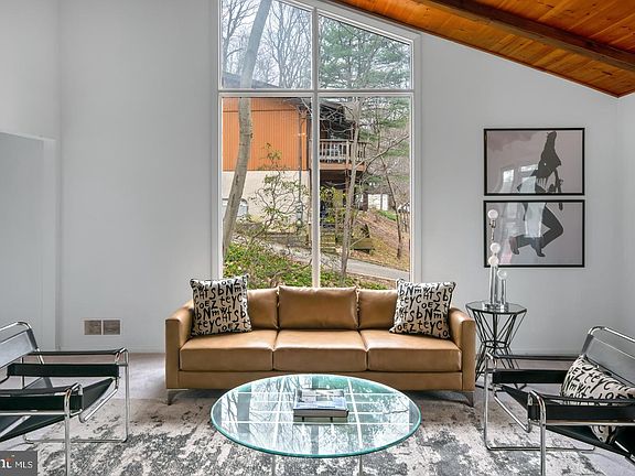 Welcome to 435 Arden Road, a Robert McElroy-inspired mid-century home featuring a dynamic roof line, walls of glass and vaulted ceilings nestled into a lush, wooded landscape. Floor-to-ceiling windows define the home, offering splendid views of the surrounding woods. An enclosed greenhouse and a sweeping front deck lets you enjoy the surroundings al fresco. The upstairs main living area follows a classic open plan, with living and family rooms that flow seamlessly into each other with a center brick fireplace with built-in bookshelves that unite the two. The asymmetrical vaulted ceiling with dramatic wood paneling stands in stark contrast to the windows which integrate with nature. All of the rooms have multiple outdoor views, or multiple access points, encouraging an appreciation of healthy living. Partial walls of varying heights create different depths in the space and a pass-through window from the living room offers a view into the kitchen. Both the kitchen and living room feature sliders allowing the outside in and light to enter rooms from multiple angles. The large expanses of glass are used to break down the interior spaces from the exterior spaces and allow the home's interior to seamlessly connect to its verdant surroundings. Next to the kitchen, the sun-drenched dining room with sputnik light fixture is spacious and begs for a large dinner party. Across the hall is the gracious Master Suite. Its bathroom features vintage tile and a separate water closet. The lower level features two bedrooms with new wall-to-wall carpeting, a vintage tiled bath, laundry room and access to the two car garage with a workshop and additional storage. Other upgrades to the home include fresh paint and carpet throughout, new vinyl flooring in the kitchen, new pavers, 3-year-young central air and furnace and a new roof. A clean, minimalist aesthetic, an emphasis on bringing the outdoors in and the presence of angular structures are the hallmarks of this home with a nearly equal emphasis on function and form.