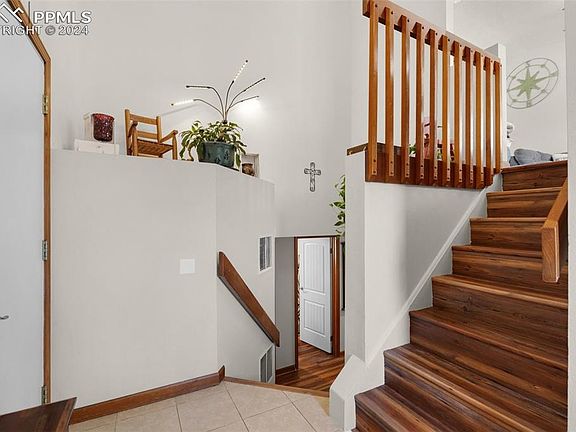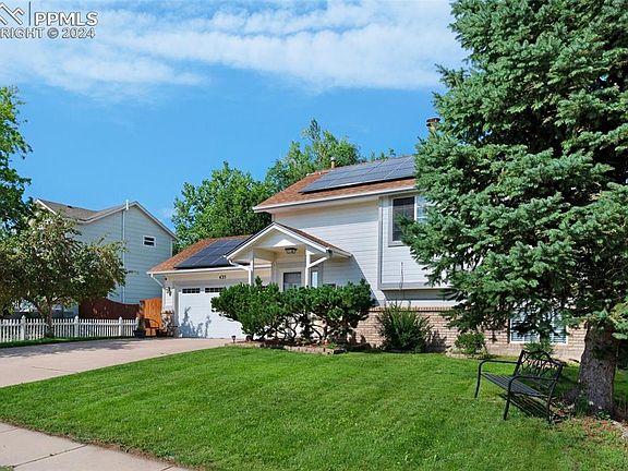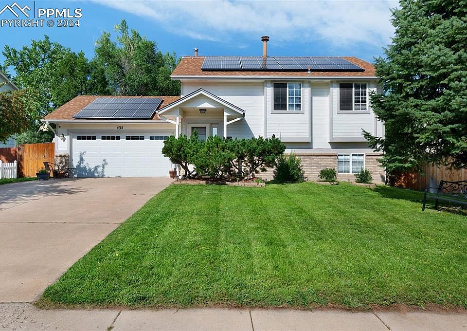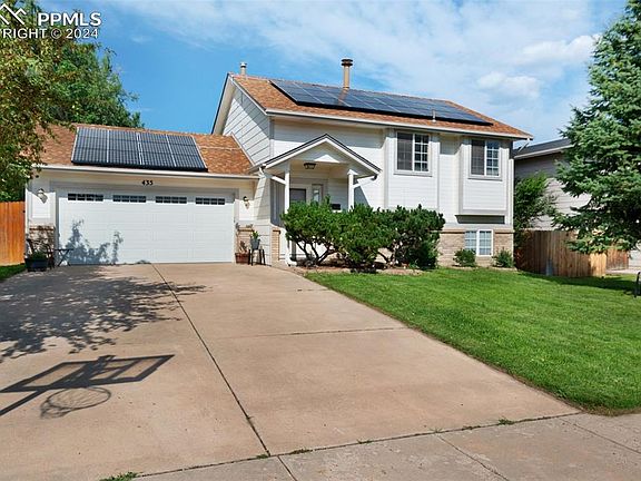 What a special find! This home is impressive for so many reasons, including the smart updates like the 2-year-old Paid off Solar Panels. That mean's lower utility costs for you! The mature trees and shrubs surrounding this home are stunning. Not only providing shade but displays the pride of ownership. This 1,468 sq ft, Bi-Level home is located in the Charming, Fountain Valley Ranch Community. This home has 3 Bedrooms, 2 Bathrooms, and an Attached 2 Car Garage. When you walk into the entryway you can see the beautiful wood floors that are only 2 years old. The Upper level welcomes you to a large Living room, Dining Room and Kitchen. All the Window Treatments are included with the home. The Spacious Kitchen offers a Large Pantry, Stainless Steel Appliances, a large Deep Sink with a Reverse Osmosis System. The Clothes Washer, Clothes Dryer and Deep Freezer are also included. The Lower Level holds all the Bedrooms and Bathrooms, giving you just the right amount of separation from your Main Living Area. The Spacious Master Bedroom features a Barn door, a 5-piece bathroom and a Walk in Closet. You will have such comfort and Peace of Mind with the Gas Burning Fireplace, Central A/C, Mountain Views and a Large Spacious relaxing Deck. The Backyard is landscaped, fully fenced, level and ready to Entertain! Location, Location! You are only a hop, skip and a jump from the Widefield Parks and Recreation. Go to their website to visit what the New Recreation Center offers. Parks, Playgrounds, Sport Fields, Pools, Splash Pad, Library, you have so many options. This home does offer a Assumable Loan Option. You better hurry, this Gem won’t last.