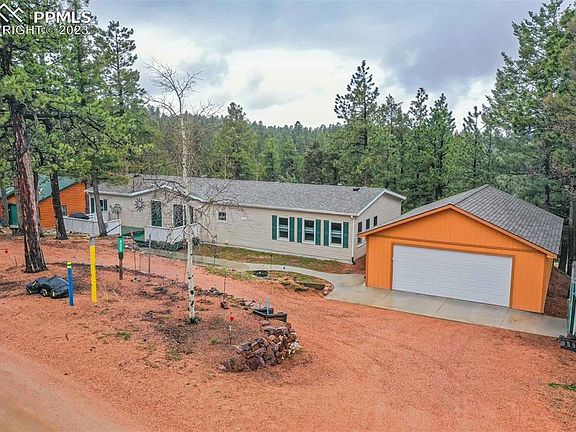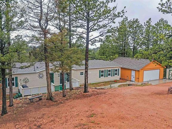 Welcome to your dream mountain home! This remarkable property offers the perfect combination of comfort, convenience, and stunning natural beauty. With three bedrooms and two bathrooms, this home’s recent improvements ensure a modern and worry-free living experience. Noteworthy upgrades include a brand-new roof with upgraded shingles installed in 2020, and the electric service upgraded to 200 amps, ensuring ample power for all your needs. A new 24x30 2 ½ car garage has been added to the property, with insulated walls and a dedicated 100-amp electrical service, providing an ideal space for your vehicles, storage, and work space. New Renewal by Anderson windows and Bali Cellular blinds were installed, allowing natural light to flood the rooms. Plus, a whole-house filtration system provides clean and fresh water throughout the entire home. Charming ranch-style home with a well-designed floor plan that promotes comfortable living. The living room seamlessly connects to the dining area, which has sliding glass doors leading out to the deck. This layout allows for effortless indoor-outdoor entertaining and enjoyment of the scenic mountain views. Kitchen is a delightful space with an abundance of cabinets, a convenient pantry, and a stylish backsplash along the countertop. Near the kitchen, a cozy sun room provides the perfect retreat for relaxation and taking in the beauty of the surrounding wildlife. The master bedroom is generously sized with its own private bathroom, ample closet space, and a soothing ambiance. For those with furry friends, a convenient mud room at the back of the house contains doggie doors that lead to a fenced-in backyard. The property includes two storage sheds—one conveniently situated near the garage and another located on the far side of the house. Don't miss out on the opportunity to call this exceptional house your home. Schedule a viewing today and begin the next chapter of your life in the picturesque Colorado mountains.