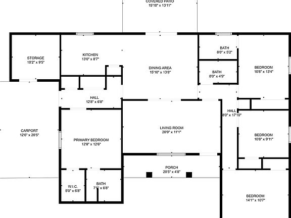 Large fenced-in yardStrong brick homeCovered porchTwo primary suitesBuilt-in shelvesVaulted ceilingSpacious dining area
