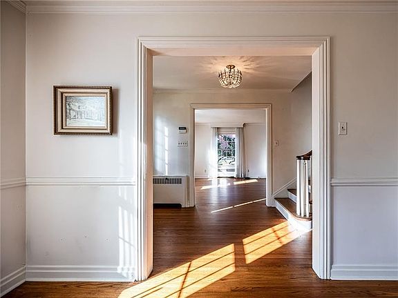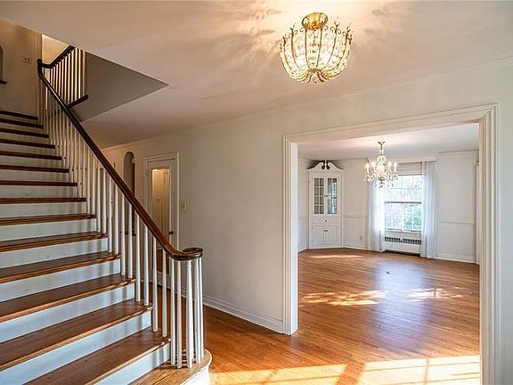 The curb appeal and charming details of this stately home are stunning. Many quaint touches from the formal dining room with built in corner cabinets, offset by a crystal chandelier. Beautiful hardwood floors in the dining room and entry into the spacious living room with French doors, to the light filled sunroom with a wall of windows. The kitchen offers a light and bright retro feel with a breakfast nook, butler's pantry and many quaint touches. The second level has four spacious bedrooms, plenty of closet space, two full baths with classic ceramic detail, beautiful hardwood floors under the carpet, a clothes shut and several built ins The third level has two large bedroom, a full bath and a den. The lower level has a game room with knotty pine, a cozy stone fireplace, a full bath and a huge laundry room. This home offers all the original features in excellent condition. updated pella windows, Great location close to schools, hospitals, shopping, minutes to the butler airport.