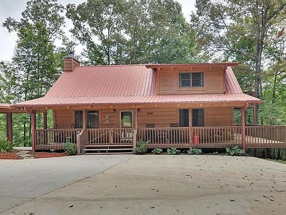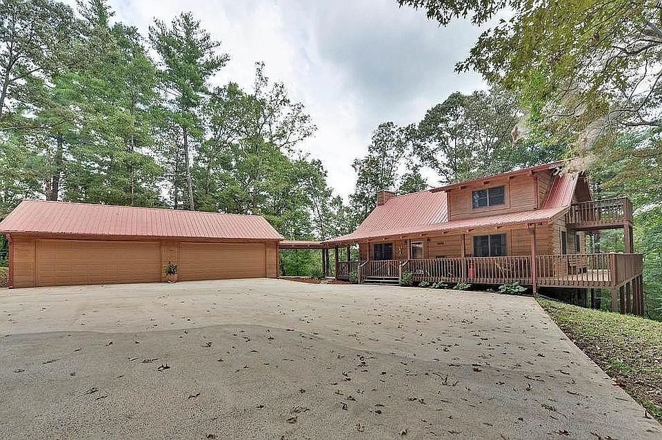 Well below recently appraised value for quick sale, with additional discount for cash buyer. Private and secluded mountain log home with no restrictions tucked away on heavily wooded 5.5 acre estate lot and only a 4 minute drive to downtown Ellijay. Solid 6x12 dove-tail log construction with metal roof and wrap around decking with beautiful seasonal mountain views. This property has the potential of spectacular full year mountain views with a little tree pruning and topping. This home has 3 finished levels with approx. 2400 square feet, and 24x40 4-car detached garage/workshop. The main level features a vaulted great room with lodge fireplace, exposed beams, and pine floor, chef's kitchen with tons of granite counter space and oversized custom wood island with veggie sink a bedroom and bath. The upper level loft is a great spot for a home office or reading nook and is adjacent to a master suite with private deck. The fully finished lower level has a 2nd master with bed/bath, laundry, oversized utility storage area, and an additional room that would easily make a bunk room for extra guests or a massive walk in closet. The Perfect property for full time living or a cabin rental program. No HOA.