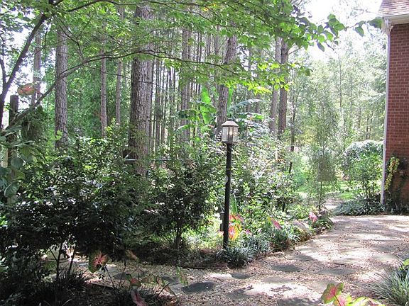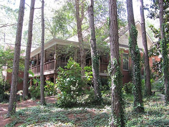This is a lovely home nestled among trees. A 3 bd, 2.5 ba, brick home with a lg family room -oak stairs leading to a floored attic. This can easily be completed for an additional room upstairs. There is a fully equipped tiled eat-in kitchen (new bk stainless steel DW, stove, refri, golden oak cabinets and Corian counter tops)- lots of cabinet space for storage.The living room has a decorative fireplace (gas logs),a sitting room overlooking the pond- a great place to enjoy your coffee in the mornings. The master bd has 2 separate walk in closets, lg master bath with separate sinks-has a shower and a garden tub. One of the bd's is used as an office-walls are Pecky cypress and has a built in cabinet,. The dining room, mas bd, great room and hallways have real hard wood flooring. The master ba, guest ba, sun porch, kitchen, breakfast room and laundry room have certramic tile floors. There is approx. 3092 sq ft. It has a sun porch located on the back of the house overlooking the pond.