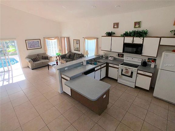 Wonderful 5 bedroom 3 bathroom home located in the Hampton Lakes community! This home features a separate dining room with a large glass window providing plenty of natural light. Spacious master bedroom with a lovely ensuite bathroom that features dual sinks, a bathtub, and a separate shower stall. Two of the guest bedrooms are furnished with two beds in each to accommodate additional guests. The homes main living space is large and open thanks to the vaulted ceilings. Just outside of the sliding glass doors are your private pool where the entire family can relax and enjoy and the amazing Florida weather! NEW ROOF AND EXTERNALLY PAINTED OCTOBER 2018.
