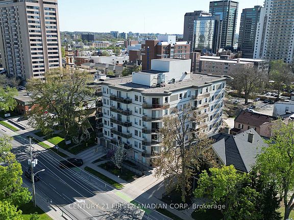 Where comfort, space, and convenience come together. This bright and spacious 2-bedroom, 2-bathroom end-unit condo in the heart of downtown London features an ideal layout with abundant natural light throughout. Step out onto the generous open balcony, perfect for relaxing or entertaining with wide open views that capture beautiful afternoon sun. Enjoy 1 exclusive-use underground parking space, with a $75 monthly fee already included in the condo fees. Recent updates include fresh paint throughout (2025) and new laminate flooring in the second bedroom (2025). The open-concept living area offers great flow, while the bedrooms are thoughtfully separated for privacy. Additional highlights include in-suite laundry, ample storage, and a full set of appliances including a convenient bar fridge. Located in a well-maintained building with excellent amenities such as a guest suite and party/conference room. Catholic Central High School is right across the street, and you're just steps from Victoria Park, Richmond Row, dining, shopping, and public transit. Ideal for professionals, downsizers, or investors. Vacant and easy to show!