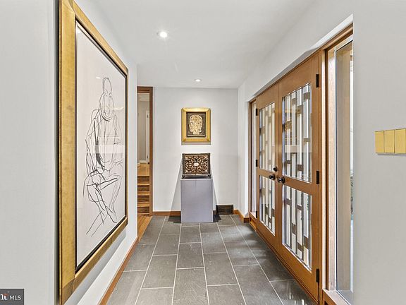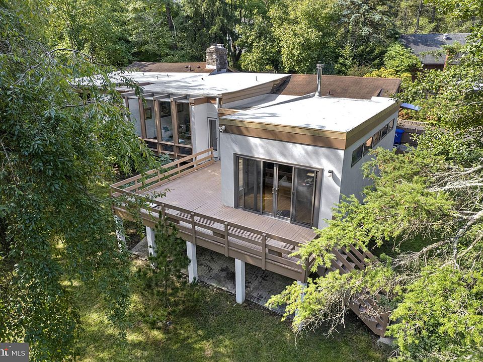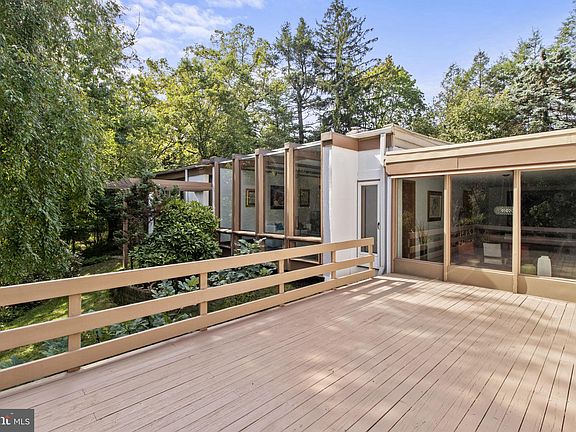 Showings begin October 13. Nestled on a secluded acre and a half, this extraordinary mid-century modern home is a masterpiece of minimalist design and natural beauty. With floor-to-ceiling windows that frame breathtaking views of a partially wooded backyard and serene pond, this property is a tranquil retreat that seamlessly blends the indoors with the outdoors. While seemingly worlds away from the hustle and bustle of the city, the regional rail station with direct service to Center City and the airport is a mere 10 minute walk from the front door. Every corner of this residence has been thoughtfully updated or preserved, creating a harmonious blend of modern convenience and timeless design. As you enter this architectural gem, you'll be immediately captivated by the imported black slate flooring in the foyer that leads into the spacious living area. First you enter the living room, anchored by a stone-surround fireplace and floor-to-ceiling built-in bookshelves with hardwood floors. Your attention will be drawn to the elevated sitting area beyond, where the black slate appears again and a wall of windows allows the changing seasons to create a dramatic and ever-changing backdrop. The stunning views of your private oasis continue in the dining room where you can fit a table of virtually any length and host family and friends. The eat-in kitchen is a chef's dream, featuring modern flat-front, ceiling-height custom cabinetry by Plato Woodworking, sleek quartz countertops, and quality KitchenAid and Miele appliances. A breakfast area completes the kitchen, creating a perfect combination of style and functionality. The family room, conveniently located off the kitchen, offers a cozy space to relax or step out onto the deck and soak in the beauty of your backyard views. A laundry room completes this wing of the home. The bedroom wing consists of four generously sized bedrooms, each offering its own unique perspective of the natural surroundings. The primary suite is a retreat within a retreat, featuring an expansive window, walk-in closet, built-in cabinetry, and an original tiled primary bathroom with a unique shower that boasts an exterior window, allowing you to connect with nature while maintaining privacy. For ultimate relaxation, the primary suite offers access to an outdoor hot tub. The three additional bedrooms have been updated with new closets, ensuring ample storage. A hall bathroom has been recently remodeled with floor-to-ceiling tiles and shower stall, providing a spa-like experience. The unfinished basement offers plenty of storage & a full bath. Outside, the magic continues with a sprawling backyard that features a pond and the lush greenery of a partially wooded setting. The deck off the family room provides an ideal spot for outdoor dining, lounging, and enjoying the tranquility of your own private retreat. Recent upgrades include replacement of multiple exterior doors and renewal of the front door to add insulated glass, installation of new closets in bedrooms, complete renovation of kitchen and laundry room (2016), replacement of flooring with imported black slate from Portugal, addition of insulation in the attic, complete renovation of hall bathroom (2019), 50 gallon water heater installed (2020), gas furnace (one of two) installed under family room (2020), flat roof sealed and silver coated (2022), replacement of all incandescent lightbulbs with LED. The proximity of this home to the regional rail station, major highways like Routes 309 and the Pennsylvania Turnpike make this home convenient for those on the go. Close to shopping and restaurants in nearby Jenkintown and Glenside and a number of both public & private schools. This mid-century modern gem is not just a home; it's a work of art that offers a lifestyle of serenity and sophistication. If you're seeking a home that combines timeless design with modern amenities and unparalleled natural beauty, schedule a viewing today.