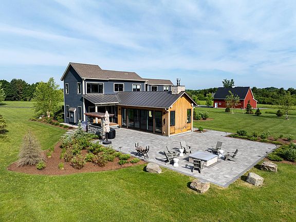 This stunning contemporary home has had a major transformation since the sellers ownership in 2017. A beautiful sunroom has been added to the east side of the house with walls of windows for optimal sun exposure. Step out to the newly expanded patio and outdoor kitchen. Enjoy summer meals on the screen porch. Built for entertaining, this floor plan is open and invites family and friends to relax while you prepare meals in the state of the art newer kitchen with upscale appliances, extra large island and walk-in secret pantry. Gracious living room with stone fireplace is perfect for after dinner games. The essential Vermont mudroom has space for all your gear, just off the 3 car heated garage and laundry room. Welcome your guests in the foyer with vaulted ceilings. The second level offers a luxurious primary suite with the closet of your dreams and primary bath with walk-in tile shower and soaking tub. You will also find 3 bedrooms, large full bath and home office, a landing with space to read or get homework done. The new lower level is where all the fun begins. A built-in wine refrigerator that holds 500+ bottles, a wine tasting room and large rec room for your favorite activities and movie night. The recently constructed barn is heated, finished with wood paneling, Swisstrack system flooring, and is ready to store all your recreation vehicles or host a barn party. This 10 acre property has been meticulously upgraded and maintained with top of the line materials throughout.