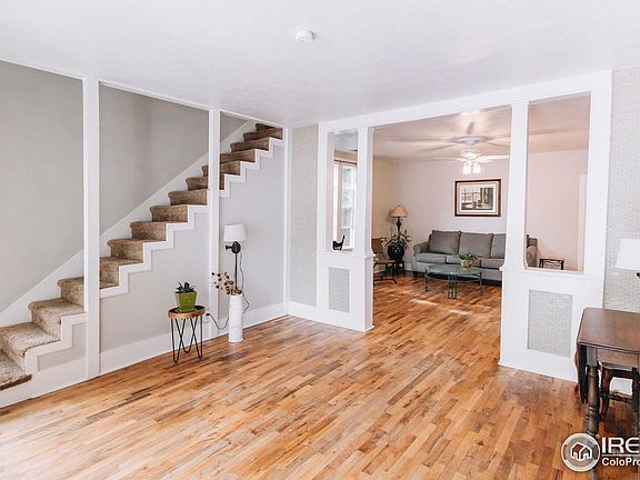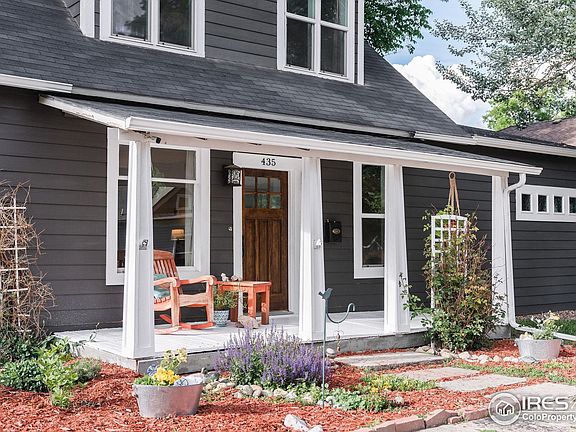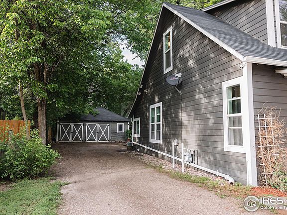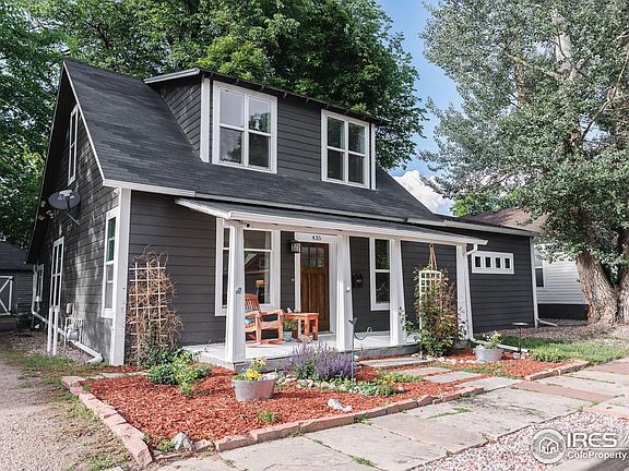 Charming 1897 farmhouse in the heart of Loveland! Located just blocks from everything downtown Loveland has to offer, this updated one-and-a-half story home has so much to love, from the covered front porch, to the wood floors, to the private backyard retreat. This home features a sprawling main floor primary suite (a rare find in a home this age), complete with a walk-in closet, separate dressing room with additional storage, and a private 3/4 bathroom. The main floor living spaces provides plenty of options for functionality, with a dining room or office, along with an oversized entry area and living space. The updated kitchen includes stone countertops, stainless steel appliances, a walk-in pantry, and an island for casual dining. Off the kitchen is a laundry room/mudroom area with plenty of natural light and room for extra storage. Upstairs, two more good sized bedrooms round out the interior of this home. Outside, a detached, oversized two-car garage offers off-street parking and even more storage. The fenced backyard provides plenty of shaded outdoor space and privacy.