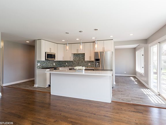 Fully renovated 4 bedroom/3 bath Ranch, Dark hardwood floors, New 2-panel doors, lush moldings, modern lighting & New Paint throughout. Living Rm, Dining Rm & Kitchen offer open floor plan. All NEW Gorgeous Kitchen features Custom Cabinetry, White Quartz Counter Tops, SS appliances (Samsung) farmhouse Sink & Oversized Island/Breakfast Bar. Stunning master suite NEW Standing Shower Bath with double vanity. 2nd & 3rd bedrooms share NEW Sub-Way Tiled Hallway Bathroom. LL has rec room with mudroom area, playroom & 4th bedroom suite with separate entrance & full bath. New Roof & Hot Water Tank! Large deck off kitchen, large lot & 2-car garage. Close to Barrington Village shopping & dining, Metra & A+ Barrington Schools.