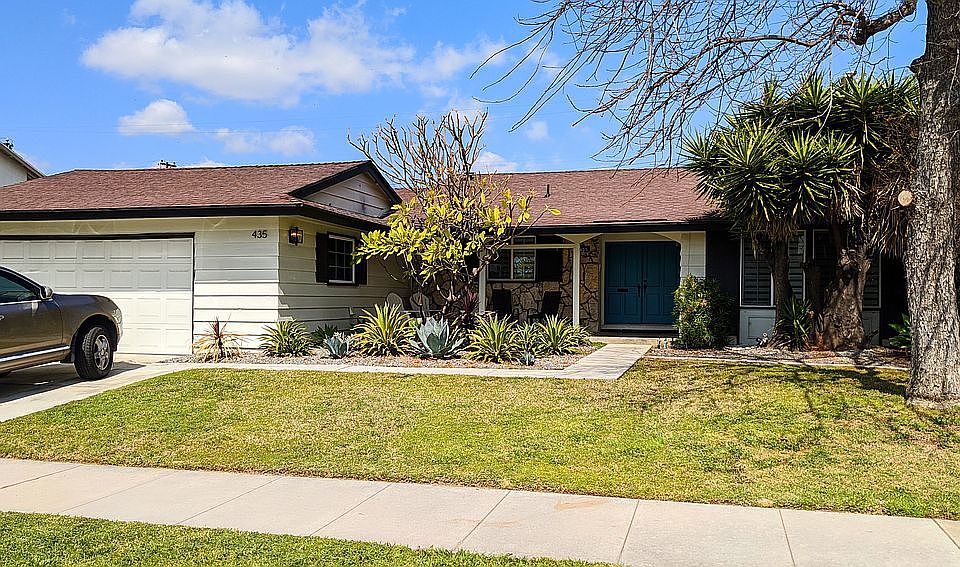 Lovely and established north Orange neighborhood, tree-lined street, great location, 435 E. Brookshire is a single story house (no stairs to contend with!) Highly sought floor plan: private master bedroom and bath on one side of the house, the other two bedrooms/bath on the opposite. Dual sinks in both baths. Fireplace in living room. Lots of natural light throughout. New plumbing for sewer completely replaced in the last 3 years. Fruit trees galore! In front, pecan and pomegranate. Backyard includes apple, pear, tangerine, fig and loquat trees. Award-winning Villa Park High School. Open House 3/28. Completely remodeled, gourmet kitchen with built-in fridge, all KitchenAid stainless appliances, Maytag washer/dryer included. open floorplan 1530 square feet, 3 bedrooms, 2 baths, 2 car garage, new bamboo wood floors throughout, new recessed lighting, new plumbing, central A/C and heat, new windows and slider, new bathrooms, new barn door closets, new window blinds, private backyard with block walls and fruit trees, great family neighborhood. Will go quickly. Call for showing 951-495-0645