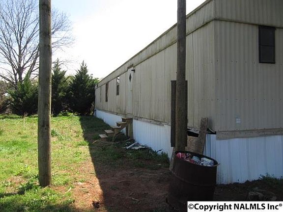 16x80 Mobile home, 3 beds 2 baths. Being sold AS-IS. Trees bordering both sides of driveway. Less than ten miles to the Guntersville State Park. All information to be verified by purchaser. ROOM SIZES ARE ESTIMATES AND HAVE NOT BEEN MEASURED.