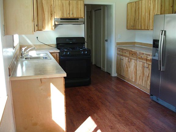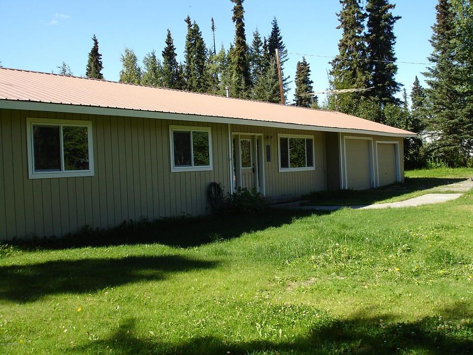 Private because of all the greenery. Access to fishing. Large yard for your family fun. House remodeled. New cabinets, Counters in Kitchen, painted throughout. New bath floor. Large 676 sq. ft. garage was carport enclosed and on separate foundation. It is plumbed for another bath in garage/carport. New flooring. Outside painted in last 3 yrs.In City of Soldotna yet very private feel see pictures