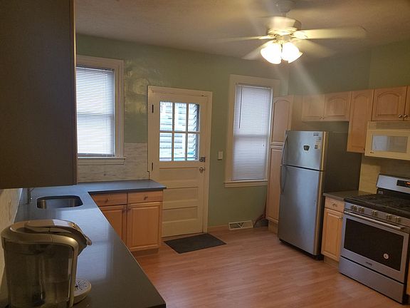Property includes a covered front porch, living room with new hardwood floors, updated kitchen with quartz counter tops and stainless appliances. Second floor has master bedroom with new bamboo floors, full bath, and guest bedroom. Paver patio is ideal for outdoor entertainment. Partially finished basement allows for a bonus room or "Man Cave". Onsite washer and dryer included with rental. Owner pays water bill.