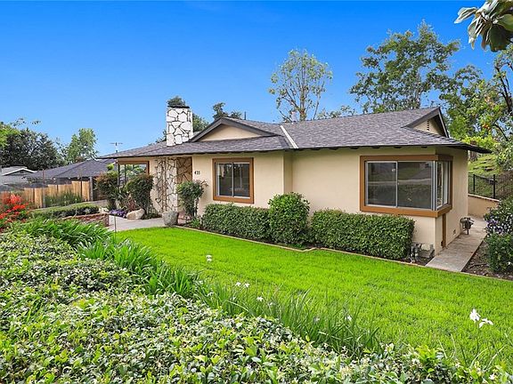 This lovely single family home is nestled in a quiet & peaceful neighborhood just north of Foothill Boulevard, where you can enjoy all the splendors of your home in serenity. The gorgeous manicured front lawn invites you to the uniquely-designed double-door entry. Brand new laminate wood flooring has been installed throughout most of the home. This home features a spacious and naturally-illuminated living room equipped with a beautiful corner stone fireplace that is perfect for those frosty nights. Enjoy evening dinners in the bright and airy dining room, or bring the meal out to the covered patio and enjoy the fresh air through sliding glass doors. The kitchen currently features tile counter-tops, wooden cabinets, electric stove & double ovens, dishwasher, and a charming breakfast bar. All bedrooms are comfortable in size and share 2 hallway bathrooms, one full bath with shower in tub, and one 3/4 bath with sparkling Quartz counter-tops and a walk-in tile shower. Laundry hookups are conveniently located inside the kitchen for easy access. The expansive driveway offers plenty of parking for multiple vehicles, and leads to a detached 2-car garage. The backyard has a sizable lush green lawn and a large covered patio for your enjoyment. This property is situated near parks, schools, the locally famous Library Park, and is in close proximity to Downtown Monrovia where you will find a variety of restaurants, cafes, and Studio Movie Grill.