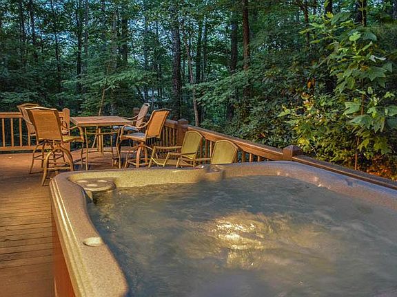 - Exterior: Porch, Wooded Lot, Deck, Garden Spot, Hot Tub, Fence, Wrap Around Deck, Firepit Area