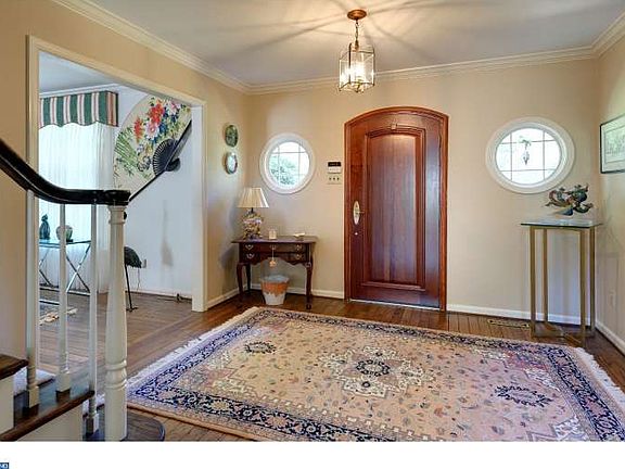 Flat,one plus acre lot makes this Gulph Mills home perfect for a pool or outdoor living room! Large family room off the kitchen opens to the back yard and is perfect for a big screen TV, bar, pool table or exercise room. A convenient powder room and laundry area are both located on the first floor. As you enter from the front of the house you are welcomed into an oversized center hall foyer giving the hint of the generous room proportions to come. The formal living room and dining room have hardwood floors, some crown and chair rail decorative molding, a gas fireplace and a built in windowed corner hutch. You will enjoy entertaining during the holidays in these spacious rooms. The large eat-in kitchen boasts loads of solid cherry cabinets and built in newer stainless steel Thermador convection ovens and dishwasher. Upstairs is the Master bedroom with plenty of room for a sitting area and with en suite bath. There are three additional bedrooms and hall bath and a huge storage closet for off season clothes. The lower level is mostly finished with but has separate storage and mechanical area that unfinished. 435 Hughes Road is in mint, move-in ready condition and has been lovingly cared for by the current owner. Great convenience to Wayne, the King of Prussia Mall, the rest of the Main Line and transportation make this a must see and must buy! Seller is offering a one year HSA Home Warranty.