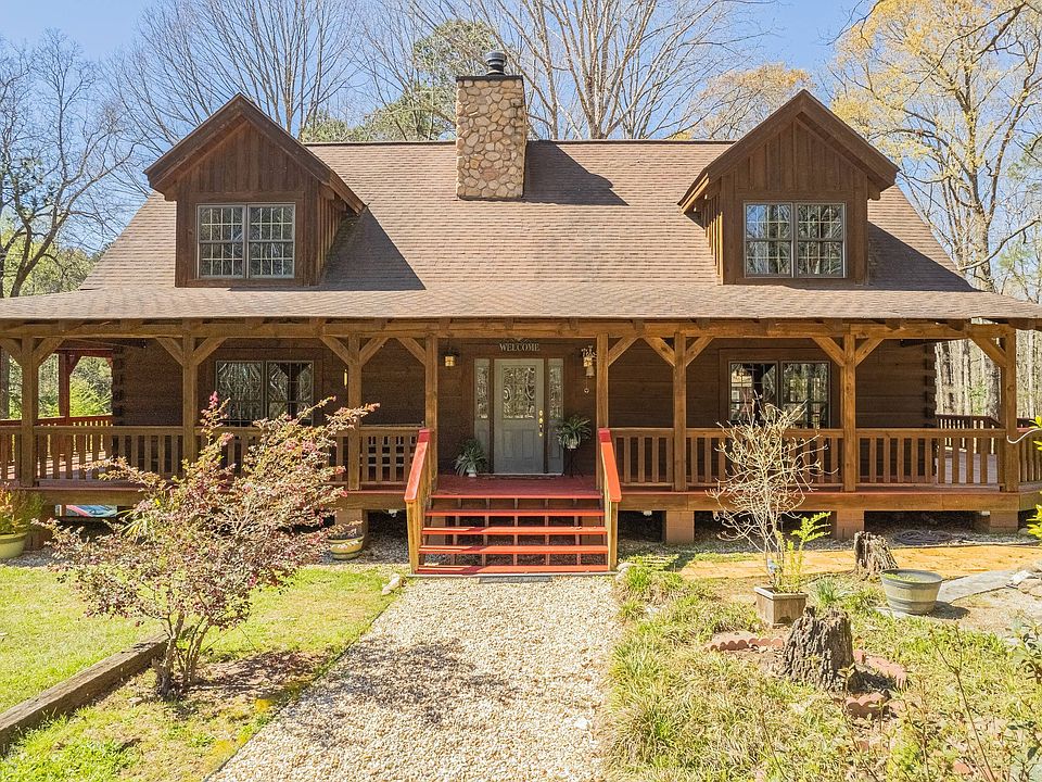 Beautiful log cabin home on nearly 15 acres, come bring your horses! This home boasts beautiful vaulted and beamed ceilings in the family room which can also be appreciated from the foyer. There are hardwood floors throughout the home with carpet in the 2 secondary bedrooms upstairs. The owner's suite is on the main floor at the back of the home to maximize privacy. In the primary bathroom, there is a gorgeous free-standing tub that is great for soaking. The kitchen has updated stainless steel appliances, granite countertops, and an eat-in bar. Gather around the fireplace in the family room on cool winter days and heat the entire home. The foyer gives stunning views of the landscaping and home. This space can be used for a gaming or a sitting area. Park your car in the basement, use it for storage, or both. The wrap-around porch is great for entertaining when the weather is nice. From the porch, there are views of all the pastures so you can watch your horses while you drink your morning coffee. There are multiple pastures that are fenced and cross-fenced with vinyl fencing for livestock. Off the side of the shop building, there are three 12X12 box stalls. When you drive into the property, on the right is a riding arena with an M10 base and river sand. The ring has not been used for a while, but it just needs to be drug and can be used again. The shop is currently being used as a dog kennel, but can easily be transformed into a feed room, tack room, garage, etc. This home has been very well maintained and cared for. Come make it your own!