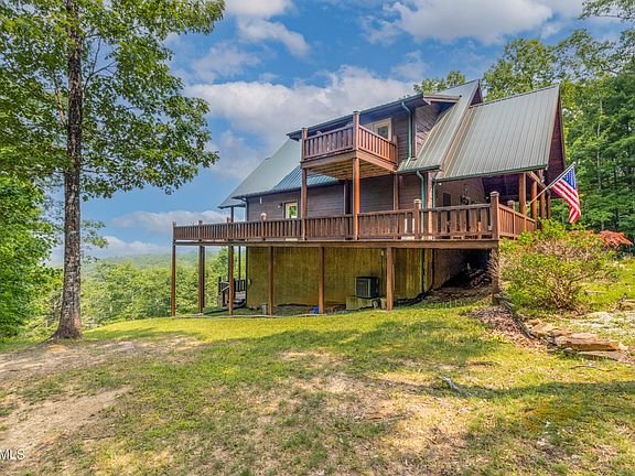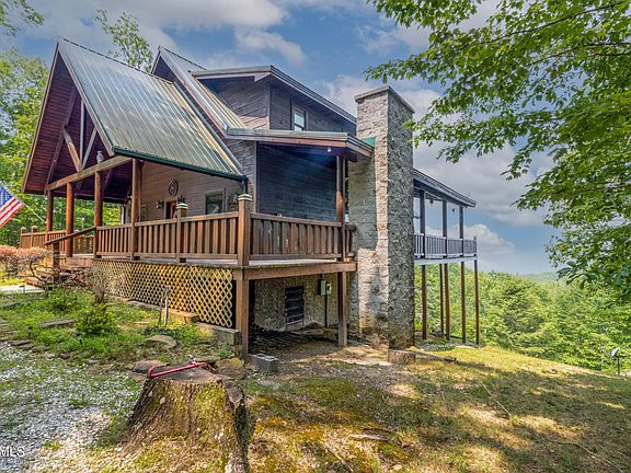 Introducing the epitome of rustic elegance - a custom-built cabin nestled on a ridge with unparalleled sunset views all year round. Situated atop the majestic Big South Fork National River & Recreation Area, this beautiful home is a sanctuary for nature lovers and adventure seekers alike. As you approach the cabin, you will be captivated by the three levels of decking, each offering breathtaking panoramas of the surrounding mountains and wilderness. The main level boasts a partially covered wrap-around deck, perfect for enjoying the outdoors in any weather. And what better way to unwind than by the custom stone outdoor fireplace, creating a cozy atmosphere for relaxation and connection. Step inside, and you'll find a thoughtfully designed layout that ensures utmost privacy for guests. With each level featuring its own unique master suite and full bathroom, everyone can enjoy their own personal retreat. The main floor is a feast for the senses, with a spacious kitchen that seamlessly flows into the open-air living and dining area. French doors and oversized windows flood the space with natural light, providing a stunning backdrop for creating lasting memories. Venture up to the upper level, where a cozy loft awaits, perfect for a reading nook or a quiet escape. The large private master suite with a full bath and a private balcony beckons you to relax and soak in the awe-inspiring views. And there's more - the finished basement offers another master suite with a full bath, a versatile rec room, and a walkout deck. The basement rec room, currently set up with an additional bed, is the ideal space for entertaining or accommodating extra guests. This custom-built cabin is not only a home but a gateway to the wonders of nature. Whether you're exploring the nearby national park, taking a hike through the wilderness, or simply savoring the tranquility of the surroundings, this cabin offers an unparalleled escape from the ordinary.
