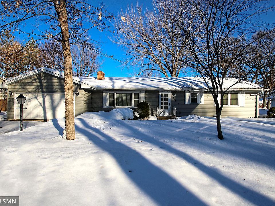 Location - Location - Location! This spacious rambler style home features 3 main floor bedrooms, living room with fireplace & built-ins, 1/2 bath in the primary bedroom, and main floor laundry. The lower level is finished with a family room with fireplace, workshop/office, bathroom, and kitchenette. Most windows are newer vinyl. Newer furnace, central air, & water heater. Deck overlooks fenced in yard, finished 2 car attached garage, vinyl siding, and two storage sheds included.