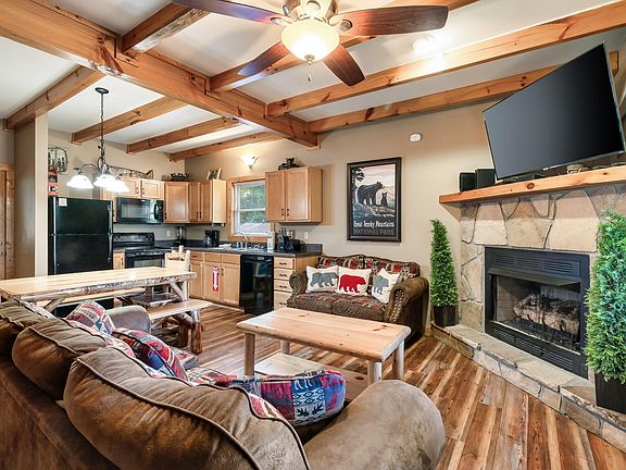 Amazing location in the heart of Pigeon Forge, just 1/2 mile from the parkway. This quaint 4 bedroom 2 bath cabin has consistently earned over $93K/year in revenue! It features 3 King bedrooms, a twin over full bunk room, master bedroom with Jacuzzi tub on main level, gas fireplace, shuffleboard table and multiple Arcade games for kids of all ages. Outside you'll find a screened in private back porch with the Hot Tub, Fire Pit area, Carport and plenty of parking and it's on all city utilities. It's the ideal STR cabin to add to your portfolio. New roof in 2023. In 2021 the upstairs open loft area was converted into 2 additional bedrooms, all new LVP Flooring was installed downstairs, arcade games, fire pit, grill and large bed swing on the front porch, were added. Each upstairs bedroom has it's own heat/air units to ensure comfort.