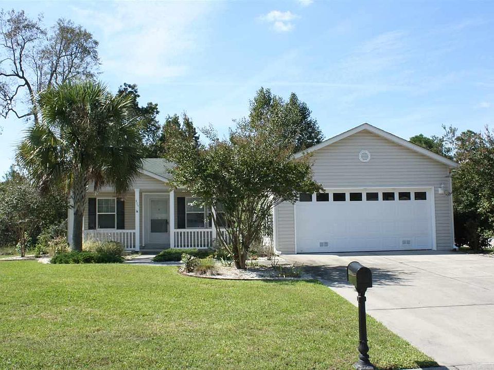 Beautiful home with the popular Glen Eagle floor plan, 3 Bedrooms and 2 Bathrooms on a private wooded lot in Lakeside Crossing. 2 Car Extended Garage (26x19). Kitchen with eating area for a dining table, and a work island. Master Bedroom is large and looks out to the private backyard; Master Bathroom has double sinks, a shower and a large walk in closet. Over-sized garage is perfect for a workshop area. Lakeside Crossing is an active, premier planned community with wonderful amenities including paddle boats, large indoor pool, gorgeous amenities center with a full time activities manager, pickle board, shuffle board, and the list goes on! Located near shopping, dining, entertainment, and medical facilities. And just a short drive to the beach!