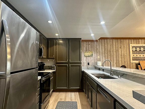 Beautifully updated 2-bedroom plus den, 2-bathroom condo within distance to Canyon Lodge ski area. Recently remodeled with brand-new refaced cabinets, quartz countertops, new wood floors, and carpet. Features a gas log fireplace and convenient in unit laundry. Popular year-round rental. Property currently under construction.