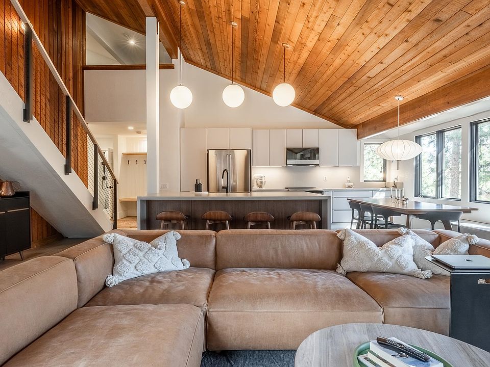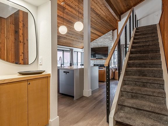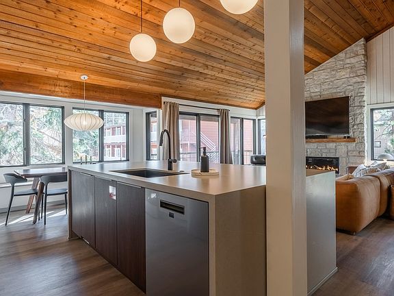 This top-floor Mountainback condo, originally the developer’s unit, has been completely renovated to offer modern design without foregoing the warmth of the original wood elements that make it unique to Mammoth. Filled with natural light and offering views of the Sherwin Mountains, this rare find is ideal for anyone looking for a luxury mountain retreat. The open-plan living area features vaulted ceilings and two ensuite bedrooms on the main floor. Upstairs, the spacious loft includes built-in bunk beds, a separate den/office area with a sleeper sofa and game table, and a full bathroom. This hard-to-find layout gives the feel of two full stories—perfect for large groups: A party can enjoy their own space upstairs, while another can have room to relax downstairs. The chef’s kitchen features high-end European cabinetry by FORM, quartz countertops, a Blanco sink, a touchless Delta faucet, and top-of-the-line stainless steel appliances, including a sonic ice maker. Perfect for hosting holiday dinners or casual meals after a day on the slopes. Ample storage throughout includes multiple large owner’s closets and a ski closet in the vestibule outside the front door. With covered parking and additional overflow parking conveniently located next to the unit, hosting guests is effortless. Mountainback Condominiums are highly sought after by both owners and guests, known for their excellent on-site management and well maintained amenities, including a pool, sauna, and several hot tubs—one located just steps from this unit. Conveniently situated between Mammoth Mountain’s Canyon Lodge and the Village, with shuttle service directly outside your door, the location offers unbeatable access to year-round activities and adventure. This gorgeous Mammoth condo, with its thoughtful renovation and prime location, is a rare opportunity in Mammoth. Schedule your showing with your Mammoth agent today!