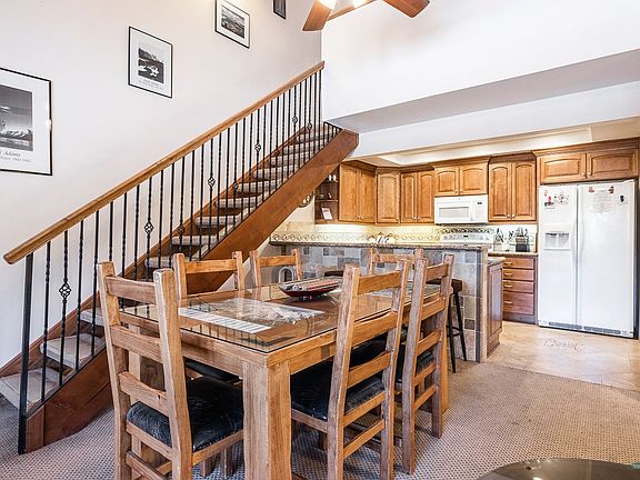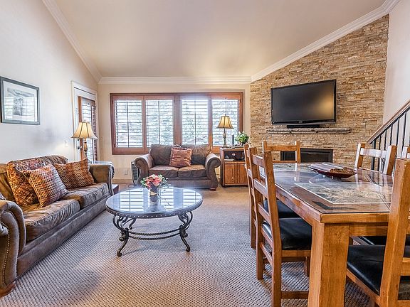 This spacious two bedroom plus loft three bathroom condo on the top floor is completely upgraded. Unique and elegant tile throughout. The living room boasts a marble mantle with stacked Golden Marble Rock on the wall of the newly installed gas fireplace. The kitchen has granite countertops, a beautiful tile floor, and soft close cabinetry. There is a covered deck off the living room accessible from the master bedroom or the living room. The marble walls in the Master Bathroom give it the feel of a European spa. All the windows on the main level have California shutters allowing in lots of sunshine. The second bath on the main level has a stone pedestal sink and more custom tile. Upstairs in the loft are two twin beds and another custom bathroom. In addition, there is a washer dryer in the condo, a private 200 square foot storage area/owners closet to store all your toys, and a dedicated covered parking spot. Located at a Blue Line shuttle stop between Canyon Lodge and the Village, you will be able to walk down to dinner and shopping or up to skiing and mountain biking. This should be your new home in the mountains!