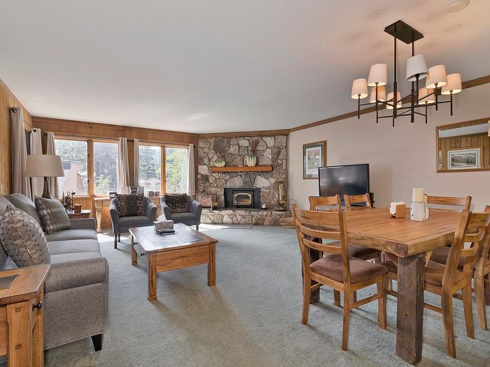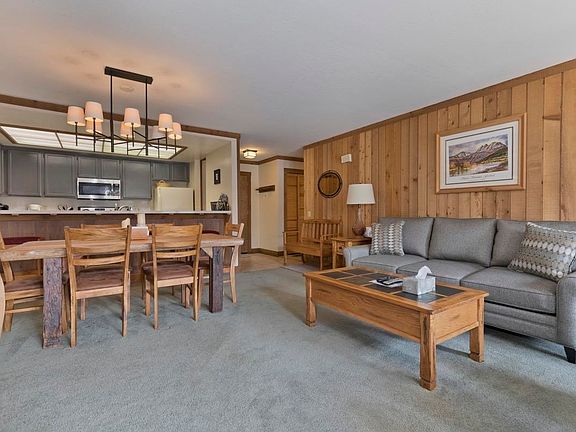 Sellers are motivated on this nicely updated unit that exemplifies classy mountain style. It is the perfect place for your Mammoth adventure to begin. It is spacious and gets lots of light from the south facing windows. The kitchen has just been updated with new counters and backsplash and a new farm style sink. The cabinets are freshly stained in a tasteful grey tone. Carpets were new last year. Brand new living room sofa and chairs. A stylish modern chandelier lights the inviting dining room area. Very conveniently located on the first floor above the underground parking, near the office, pool and spa. Shuttle bus stops right out front. Make an offer!