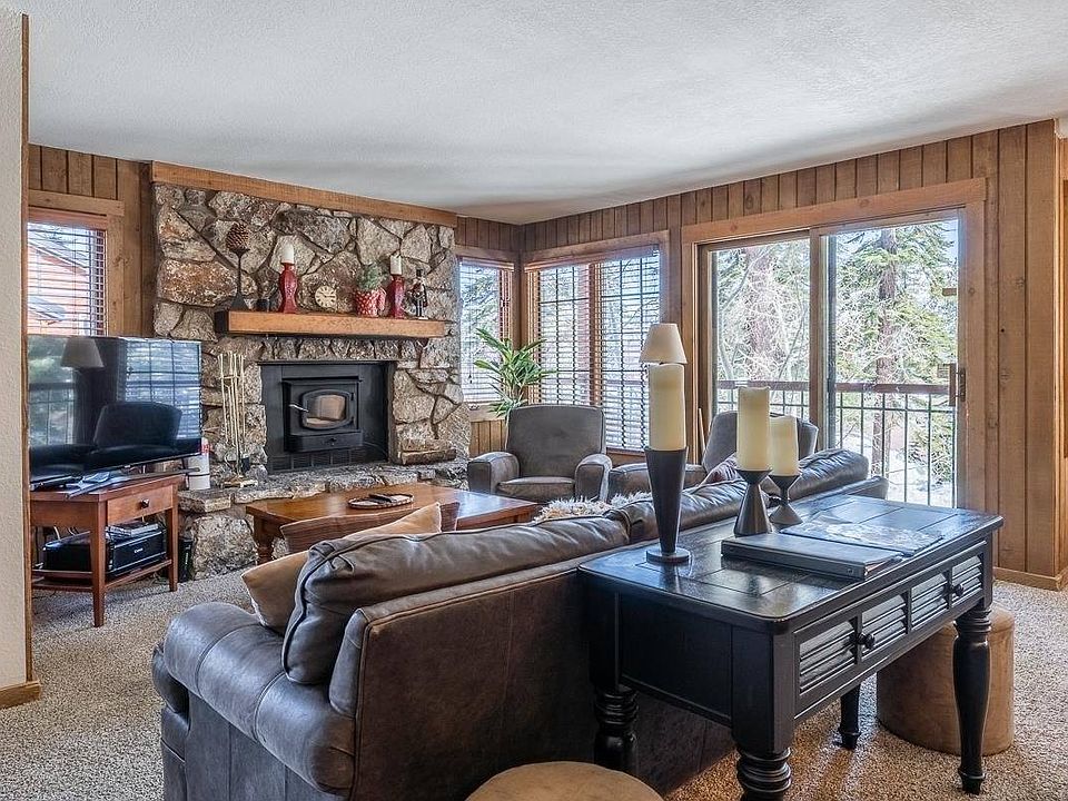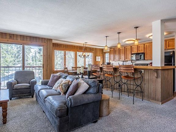 Welcome to this beautiful and spacious 2 bedroom 2 bathroom condo, where natural light and warmth abound. With 1,329 square feet of living space, this unit offers an open and airy feel, perfect for relaxation and entertainment. The open floor-plan is ideal for entertaining guests and making dinner with family and friends. The condo boasts two generously sized bedrooms with plenty of closet space; the primary bedroom features an ensuite bathroom. With two private balconies to enjoy the sun and fresh air, and a cozy wood-burning fireplace, this property is perfect for both winter and summer use. The condo is being sold furnished and turn-key and offers underground parking and the convenience of a washer/dryer in the unit. Located on Lakeview Blvd, just down the street from Canyon Lodge, this complex offers underground parking, multiple hot-tubs, a seasonal swimming pool, and is close to many bike paths and shuttle stops providing easy access to all that the area has to offer.