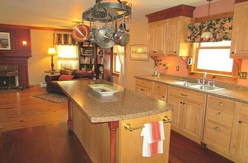 Imagine passing through the stately gates to your own private estate! This wonderful 3 BR 2 BA custom Colonial is beautifully sited on an amazing open, level almost 2 Acre corner lot! Very appealing, from the fresh new Sun Room to the striking Kitchen with solid maple Prestige cabinets, 7 ft island with contrasting trim detail and eye catching Brazilian Jatoba hardwood flooring to the fireplaced front to back Living Room with warm wide pine flooring. Formal Dining Room with closet style alcove (need a first floor bedroom?) and wide pine flooring plus full Bath complete the first floor layout. Second floor Bedrooms include large Master Bedroom with walk in Closet and full Bath. Finished basement area with lots of storage and convenient multi use raised tub! Over sized carriage style Garage with full width skylit office above with interior and exterior stairway, fenced in area, stone walls and lots of play yard complete this gorgeous property!