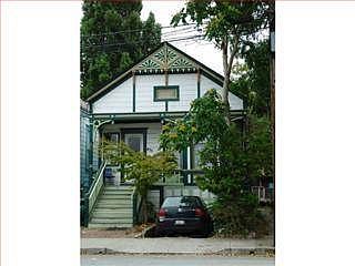 Major price reduction! Now a bargain...grab it before it sells to someone else! Built in 1888, this is a side by side Stick-Eastlake "Twin Sisters" designed by famed architect Daniel Damkroger. The Historic Registry has protected the authenticity of the exterior. On the interior, many of the original moldings and finishes remain in place. The grand pocket doors separating the original living and dining rooms slide effortlessly, unlike pocket doors of today. Tall base boards, coved ceilings, lath and plaster finishes and the detailing throughout all speak to the home's elegant pedigree. Over the years it has come to function as a duplex, but would certainly benefit from a return to its glamorous roots.The 1,116' house has 2 BR, 2 BA with immense storage space in the sprawling basement and in the spacious attic. The 4,008' lot has many fruit trees and a back yard with great potential for a garden and seating area. The location is awesome. Easy walk to town, down the Chestnut St. stairs!