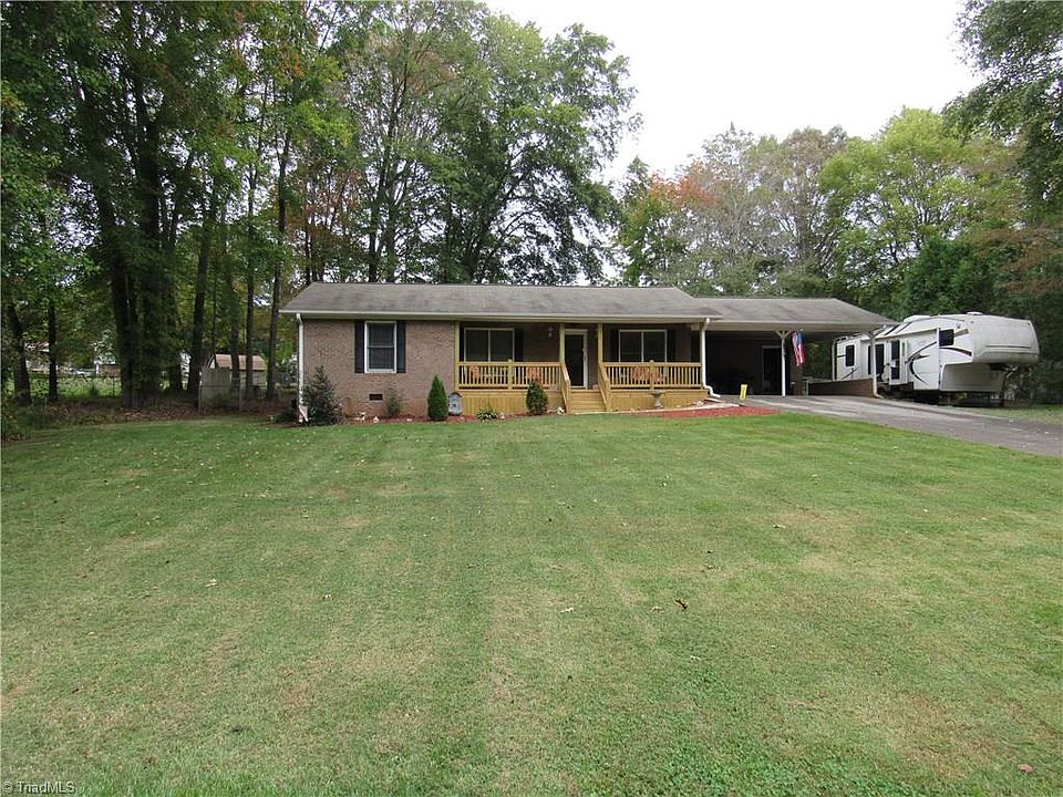 All Brick Ranch w/rocking chair front porch,2 car attached carport,fenced back yard,patio,basketball court,above ground pool w/deck surround,storage building & more! Now for the inside, Huge Sunroom,Livingroom,Laundryroom,3 Bedrooms, 2 full baths, Kitchen,breakfast, lots cabinets,kitchen appliances to remain! Great house,yard & location! Low Stokes COUNTY Taxes! A must see!