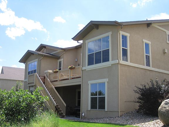 Close to Ft Carson and Cheyenne Mountain! Model-like home! Every detail designed into this home - gorgeous landscaping, views, outdoor living areas, bright and open inside. Main level master bedroom, with attached 5 piece bath and his and her walk-in closets. 2nd bedroom and bath on main level also. Galley kitchen with granite counters and travertine backsplash, stainless appliances, gas 6-burner stove, and pantry. Attached dining room surrounded by windows. Formal living room at entry; great room in center of home with floor to ceiling windows, walk-out to balcony, gas fireplace, ceiling fan, speaker system. City views from deck! Mountain views from front porch! Walk-out basement has family room with gas fireplace, office with wood floors, gym area, two bedrooms, and full bath. Security system, vaulted ceilings, A/C, attached 3-car garage. Close to park and an easy walk to Cheyenne Mountain Elementary school, in Cheyenne Mountain School District. 12 month lease. Tenants pay gas, electric, water and sewer. Trash is included in rent. No smoking or growing at the property.