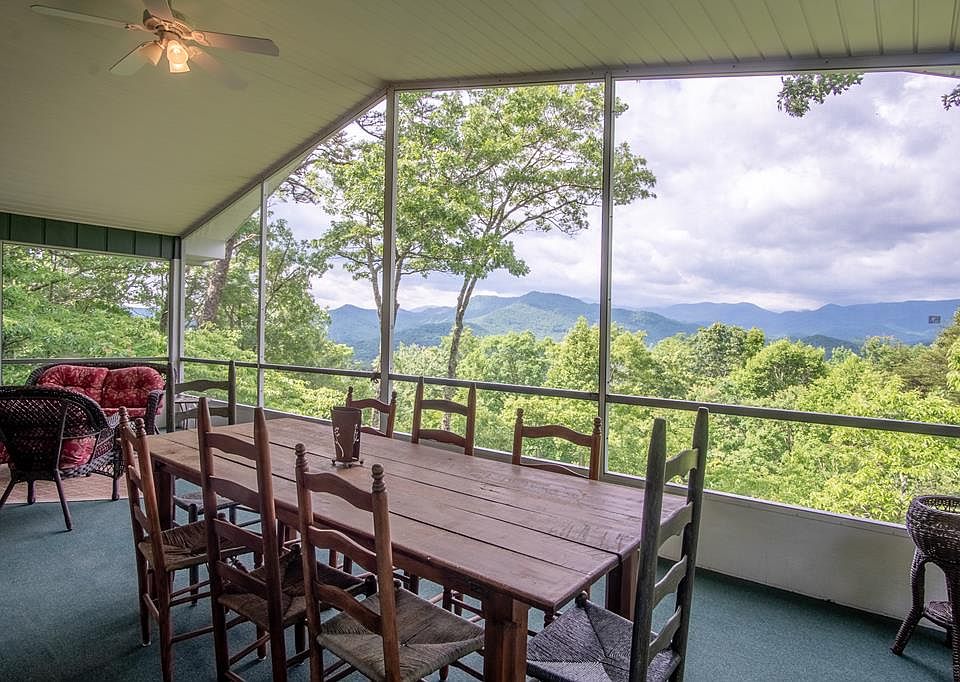 Soaring bird's eye views and private tranquility can be found at this spacious getaway. Plenty of parking and an attached covered carport provide easy access. The main floor features vaulted ceilings and hardwood floors. Sliding glass doors in the living room open to the deck, which is spacious enough to host a large group for an al fresco dinner with the stunning view as a backdrop. There's no lack of outdoor living space, with the uncovered, covered, and screened areas. The primary suite offers his and her closets and a dual vanity. Guests will wake up to mountain vistas in the main floor guest room. A guest suite and rec room downstairs both access the covered deck. The lot encompasses 2.8+/- acres so your seclusion is protected. A garage provides additional parking or room for your favorite hobby.