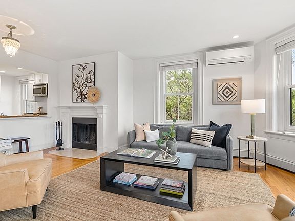 Airy 2BD/1BA in historic brick building with 1,090sf, sun-filled southwest corner exposure & views of the Boston skyline. This floor-though condo features tall ceilings, hardwood floors, an open layout and many upgrades. The kitchen has ample cabinets, quartz counters & new appliances and conveniently opens to the living room, a 15’ x 14’ space which features a fireplace & views of Boston. Off this generous room is the dining area, which boasts elegant built-in bookshelves. The white tiled full bath and 2 spacious bedrooms, each w/excellent closet space, are down the hall as is an additional closet and in unit laundry. Enjoy basement storage and use of a semi-private patio. This pet-friendly classic Charlestown condominium sits at the corner of a charming gas light street close to the MBTA Orange Line, 93/92 Bus Lines, Rt 93 and close to all the shops and restaurants of Charlestown.