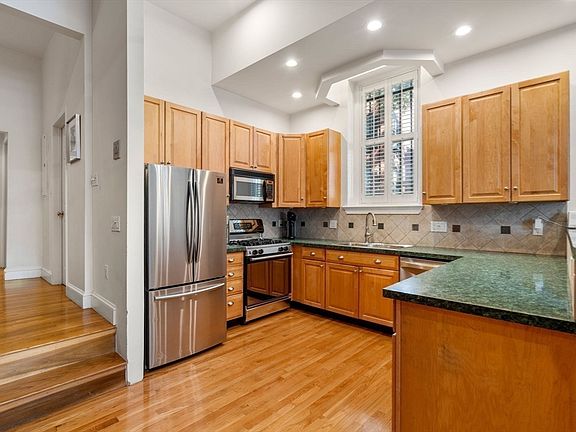 Fantastic opportunity to own a piece of Charlestown history. Formerly a pharmacy, this 2BD/2BD condo features towering ceilings, exquisite original built-ins and a fabulous layout for entertaining and everyday living. The large and balanced living room can accommodate a sectional plus additional furniture, and the separate dining area is the perfect place to perch and enjoy a meal by the fire. The kitchen, open to both of these spaces, features ample counter and cabinet space. Two bedrooms, one with an ensuite bathroom, are in the rear, as is a second full bathroom off the hallway. A large ground-level common deck is located just steps from the unit. Enjoy an oversized basement for storage (truly, large!), central air, in-unit laundry, recently updated kitchen appliances and a private entrance.