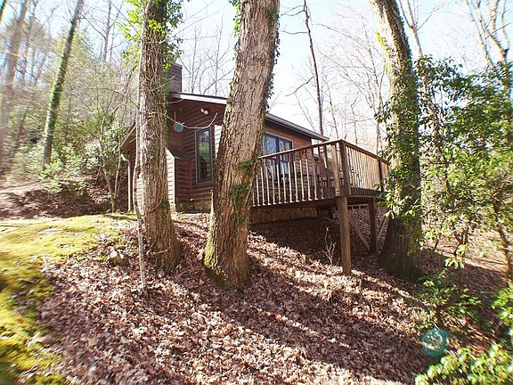 This unique property has so much history and charm and located about one mile from the John C. Campbell Folk School in Brasstown NC. Meander down the country road to a setting with two cabins and a workshop all maintained and designed to be like the original cabin.The original heart pine walls and wood floors, still rich in color and beauty along with updated bathrooms with ceramic tile, new vanities,new kitchen cabinets and appliances enhances the rustic getaway. Take time and leave all the bustle behind as you explore the nature in the Appalachian mountains just down the road where creative minds gather to create at the school. This property could be an investors dream with folks begging to share an evening or two in one of the cabins. Each one has one bedroom, one bath and touched with an artistic design that most would appreciate.The fireplaces in these two cabins are uniquely constructed to be the focal point along with touches of stain glass windows. It could be income producing or bring your family and friends to enjoy the peaceful setting. Spend time in this nice workshop any time of year creating and puttering around on a cool day by the pot belly stove.