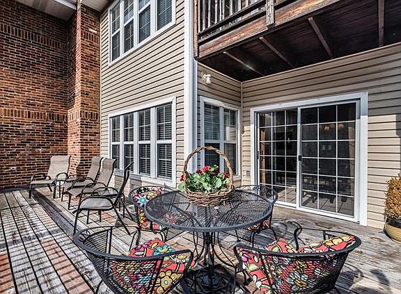 Live in a condominium surrounded by beautiful homes, landscaping, and wildlife. This condo is located in the coveted Heritage sub. 2 baby deer met me at Meramec Way and Gettysburg Landing! Enter this lovely home to a welcoming foyer with a view of the 2 story shiny wood staircase. A large open living room that extends into a dining area with a built in bar and leads to a huge deck that is 26' wide. The kitchen is open and easy to work in with a nice pantry. Many windows throughout the main level let the sunshine in. The corner fireplace encourages quiet evenings reading and relaxing. The master bedrm is large, walk in closet, and has patio doors that invite you to an attached deck for morning coffee. The bathroom is luxurious with a large tub, double vanity, sky lights, large window and mirrors. There is a walk through to the other bedroom that has a shower and toilet...very convenient! The second bedroom has plenty of space, walk in closet, and a private vanity with sink.