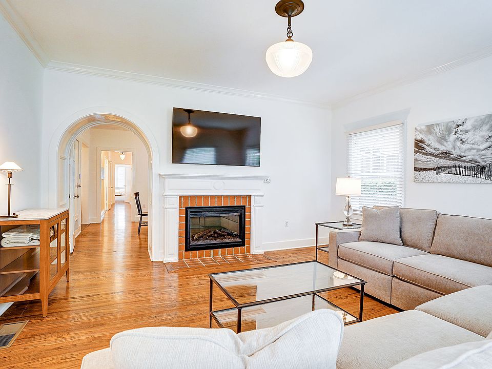 5 Blocks from the Ocean Ave. Complete Kitchen, Parking (2) (One garage and the Space Behind), Stainless Steel Appliances, Utilities, Central A/C, Full Laundry Room with Washer/Dryer, Separate Office with Desk and All in one Printer, Hardwood Floors, Marble/Tile Bathrooms, King/Queen Beds, Wi-fi, 3 Smart TVs, and Fireplace.