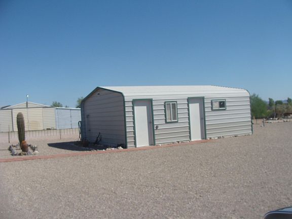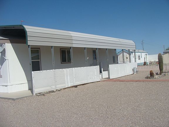 Nice and clean. Furnished as shown. Garage has bedroom and bath. Rest of the garage can be used as a workshop or store your off road vehicles. RV Parking and Hook up. Metal cover over entire Park Model. Covered porch. Town sewer and water.