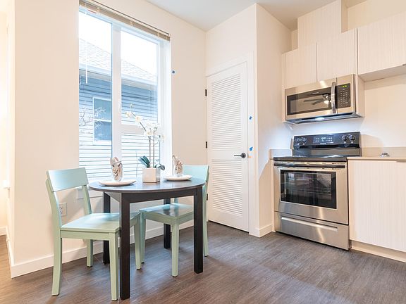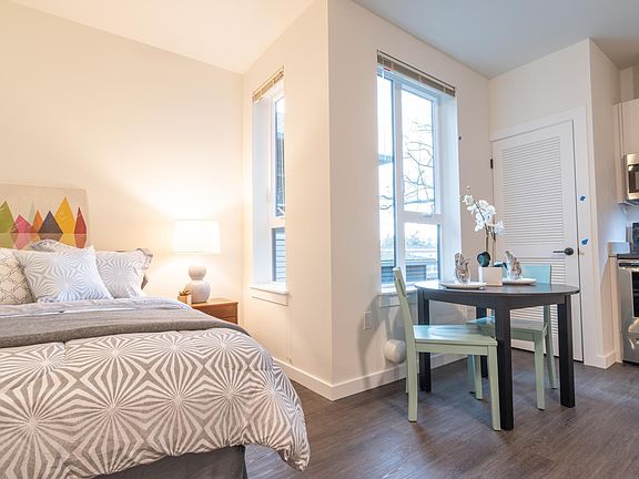 Apply online at NWVGroup .com $50 non-refundable application fee per adult. Applications are screened on a first-come, first-served basis. In-person and video tours available. Per City of Portland regulations: the Open Application Period for this property will begin August 30th at 4:45pm. Any application received before this period will be considered received at 12:45am on August 31st, per the 8-hour penalty requirement. Welcome to Church Street Commons, a stylish boutique community located just off NE Killingsworth and steps from the Alberta Arts District. Unit #201 is a bright and efficient top-floor studio offering 382 square feet of contemporary living space and thoughtful finishes throughout. Enjoy stainless steel appliances, quartz countertops, luxury vinyl plank flooring, tall ceilings, and in-unit washer and dryer. Stay cool year-round with built-in air conditioning and take advantage of onsite lobby, secured building access and onsite enclosed bike storage. Transit-friendly location, with multiple TriMet stops less than two blocks away, commuting around the city is quick and convenient. Whether you're heading downtown, commuting to PCC, or exploring the amazing dining, shops, and cafes of N/NE Portland, you'll love this unbeatable location. Don't miss this opportunity to live in a modern, comfortable space in one of NE Portland's most vibrant neighborhoods. Call/text NWV Group to schedule your showing today! **Please note photos shown are of a similar unit, exact unit not shown.** Minimum 1 year lease, no smoking allowed, small dogs under 30lbs and cats allowed with $50/month pet rent, tenants are responsible for paying electric and internet and are billed $55 monthly for water/sewer/garbage, deposit equal to one month's rent, renter's insurance required.