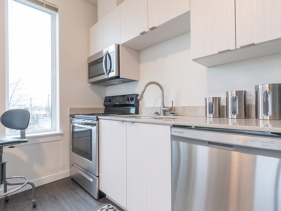 Move-in Special: $500 visa gift card! Apply online today at NWV Group! The application fee is a non-refundable $55 per adult applicant, and all applications are screened on a first-come, first-served basis. Call or text NWV Group to schedule an in-person or video tour! Welcome to Church Street Commons, where brand new 523 sq. ft. apartments are available now, featuring cutting-edge designs and a variety of modern amenities. Select floor plans offer private patios or top-floor mountain views. The kitchen is equipped with sleek quartz countertops, stainless steel appliances, and plenty of cabinet space, making it as functional as it is stylish. Every apartment boasts a spacious layout with tall ceilings, ensuring a bright and airy feel throughout. Enjoy the convenience of in-unit washer/dryer and A/C in each apartment. The building includes a secure lobby, enclosed bike parking, and fob access for added security. Located in the vibrant Alberta Arts district, you're just around the corner from excellent dining, shopping, and entertainment on Killingsworth. With minutes to downtown and easy access to public transit, commuting is a breeze, and biking anywhere in N/NE Portland is convenient. Please note: Photos shown are of a similar unit. Call NWV Group today to join our next showing! Minimum 12 month lease, $55/month billback for water/sewer/garbage, tenants pay electric and cable/internet, small dogs under 25lbs and cats allowed (up to two pets total) with $50/month pet rent, no smoking allowed on premises, deposit equal to one month's rent. Renter's insurance is required.
