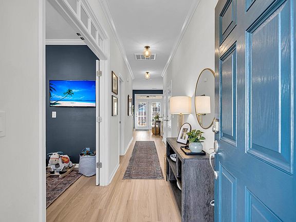 Welcome to this beautifully updated 3-bedroom, 2.5-bathroom corner home in the sought-after Nelliefield community. This charming property offers a spacious fenced-in backyard with aluminum fencing, paver patio, and screened porch for outdoor relaxation. The exterior features a fresh coat of paint, updated landscaping with hardscape edging, a raised garden bed, and a newly installed tankless water heater. Inside, the home boasts a bright, airy floor plan with LVP flooring on the main level, a gas fireplace, and a study with French doors and custom cabinetry. The interior has been freshly painted and features updated light fixtures throughout.Upstairs, you'll find a large primary bedroom with a walk-in closet, a luxurious ensuite with a double vanity, soaking tub, separate shower, and a private water closet. Two additional guest bedrooms with one offering a closet organizer with barn door. The second-floor hallway also has custom built-in cabinetry, providing ample storage, and guest bathroom. A convenient laundry room is also located on the second floor. This home is nestled in a neighborhood filled with amenities, including a resort-style pool with bathrooms, a playground, a firepit, and a covered picnic area. Enjoy scenic trails perfect for biking, walking, or golf cart rides that connect to nearby neighborhoods and Point Hope shopping. With its thoughtful updates and prime location, this home is move-in ready and waiting for you. Schedule your showing today!