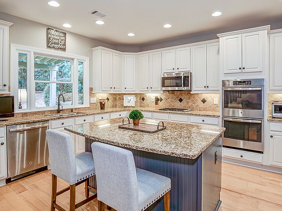 • Kitchen Features: Breakfast Bar, Eat-in Kitchen, View to Family Room, Stone Counters, Kitchen Island, Pantry Walk-In, Cabinets White