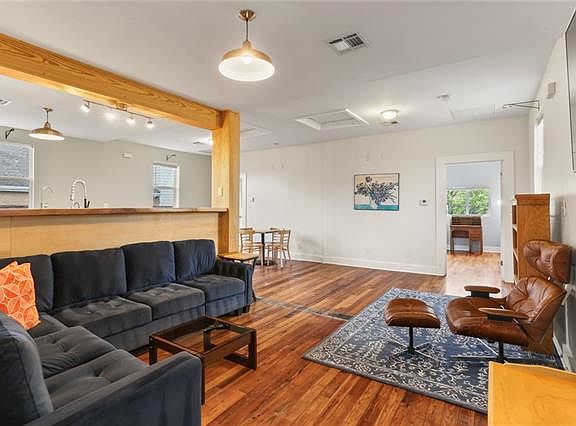 Furnished Rental Available for with flexible lease terms (2-6 months)! Quick access to the Crescent City Connection or a 15-minute walk to the Algiers Point Ferry, which takes you to the French Quarter, Central Business District and Warehouse District in 5-minutes. This second-story two-bedroom unit with sweeping views of the Crescent City Connection and downtown New Orleans from the upstairs balcony has been tastefully updated with hardwood floors, a chef's kitchen, two full bathrooms, and laundry in-unit. The large open-concept living / kitchen / dining area is great for relaxing with plentiful natural light. One bedroom comes with a queen bed, and the second bedroom has a twin bed but can be swapped out. Plenty of storage and closets! Large flat-screen TV and utilities included! Available August 1. Video available upon request.
