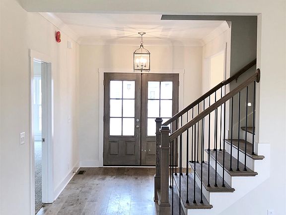 Gorgeous foyer with double front door! Kitchen has custom cabinets, tile backsplash, natural stone countertops in kitchen and all bathrooms. Master has custom closet, tile shower. Beautiful floors, HW steps, drop area with built-in shelving and tasteful trim throughout