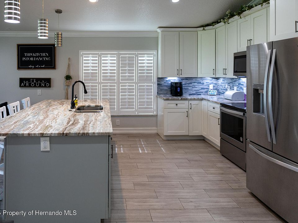 This stunning 3 bedroom, 2 bathroom, 2 car garage home offers the perfect blend of comfort, style, and functionality!! Located in the highly sought-after Trillium Village neighborhood, this beautifully maintained property is move-in ready and packed with upgrades. Step inside and be wowed by this welcoming entryway. The kitchen boasts stone countertops, ample cabinetry, and a functional layout that opens up to the living area-perfect for entertaining or everyday living. Enjoy the privacy of plantation shutters throughout the home, adding a touch of elegance and energy efficiency. Both bathrooms feature walk in showers, offering a sleek, modern feel and easy maintenance. There is an extra room in the front of the home that provides flexibility for a home office, playroom, gym, or additional living space to suit your lifestyle. Conveniently located near the Suncoast Parkway, you're just a short drive from Tampa, shopping, restaurants, and nature preserves. Don't miss your opportunity to call this beautiful property HOME!