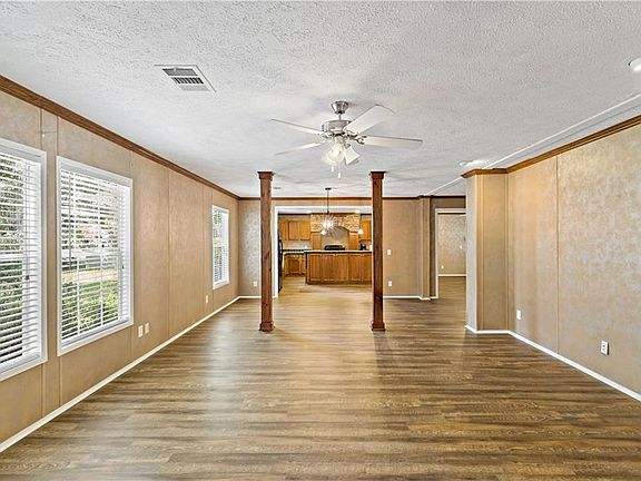 - Ceiling Fans, Recessed Lighting, Shelving, Split Bedrooms, W/D Connection, Window Treatments, Pantry, Columns, Dining Room, Den/Family Room